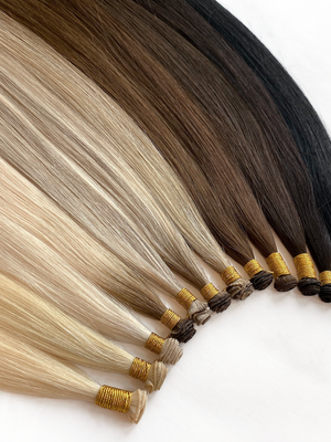 ** Hand-Tied Wefts cannot be cut at the weft: Wefts can be easily folded to fit desired widths. Due to the nature of how the wefts are made, hand tied hair should never be cut along the wefting.