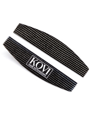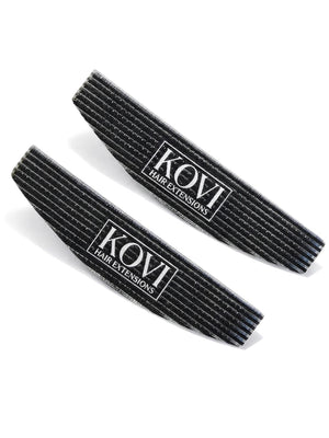 The KOVI Curved Velcro Grippers are designed to fit the round curve of the head to neatly secure stray hairs with ease during styling, cutting, or hair extension installs. With their unique curved shape, these grippers offer a comfortable, firm grip, making sectioning easier without the hassle of bulky velcro. They provide a gentle, no-slip hold for all hair types, ensuring no damage during use.